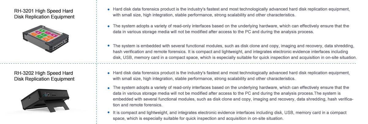 Hard disk data forensics product is the industry's fastest and most technologically advanced hard disk replication equipment, with small size, high integration, stable performance, strong scalability and other characteristics.