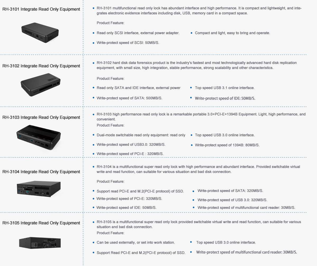 The system is embedded with several functional modules, such as disk clone and copy, imaging and recovery, data shredding, hash verification and remote forensics. It is compact and lightweight, and integrates electronic evidence interfaces including disk, USB, memory card in a compact space, which is especially suitable for quick inspection and acquisition in on-site situation.