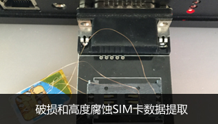 我司接到一部爆炸案的手机,该手机在爆炸现场被严重损毁,所有电路板及存储芯片均已炸碎,仅有一个严重损坏、但外观还可辨认的SIM卡。我司接到该物证后,在显微镜下拆开SIM卡的外皮,找到了SIM卡的数据引线,我们将这个芯片的引脚用飞线的方式连接到我们的设备上,进行数据提取并解析出了电话簿。 -
