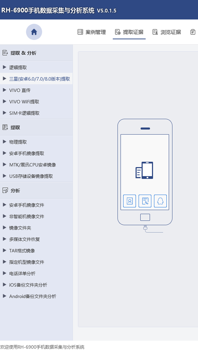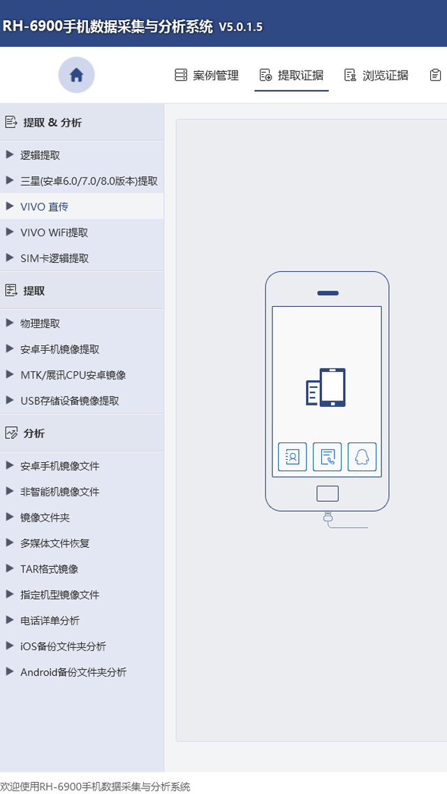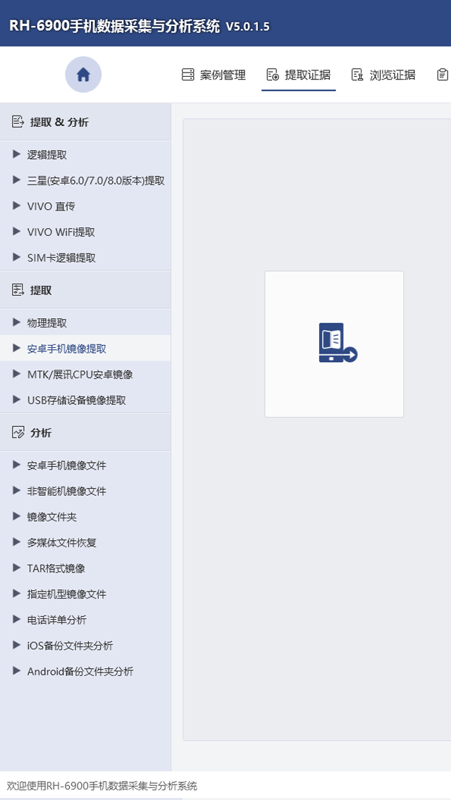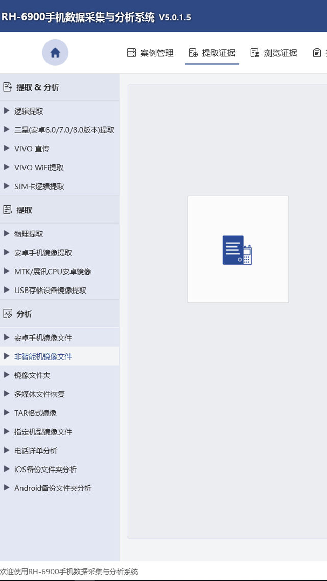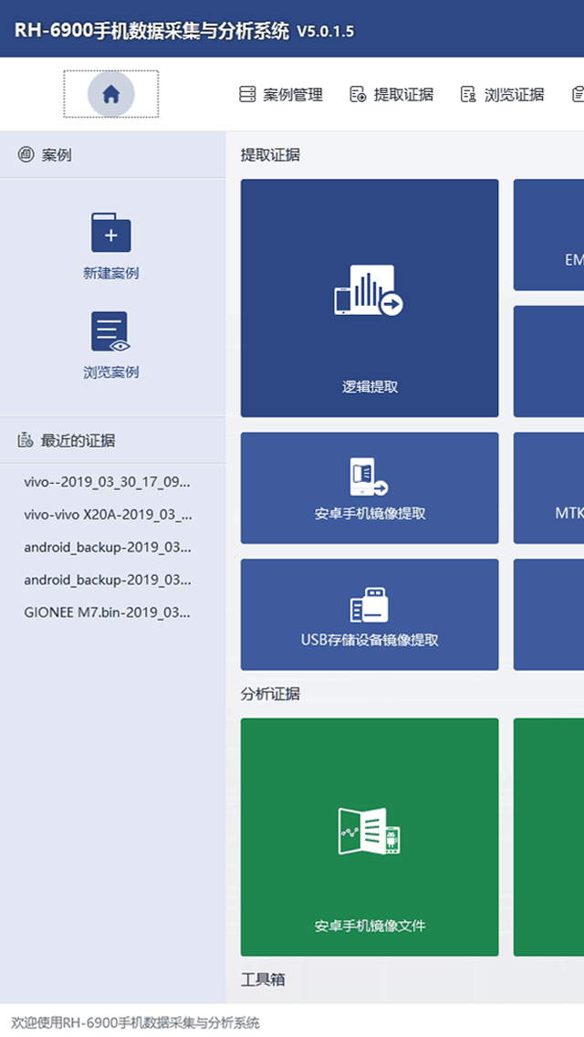 RH-6900是一套可应用于各种品牌的Android系统手机、IOS系统各版本及型号的手机、同时也支持各种品牌和山寨功能机的手机数据综合提取分析系统。系统内置通用型芯片数据物理提取、EMMC数据物理提取、JTAG数据物理提取、国产手机镜像提取、智能终端数据分析、手机SIM卡/存储卡数据分析等多个功能模块。